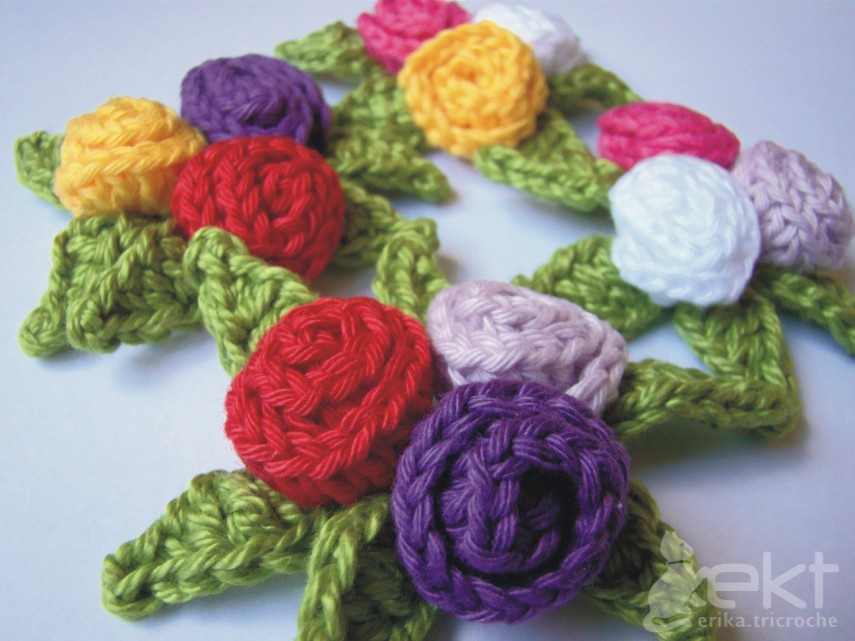 Для роз, вяжется 15 пар лепестков и сшиваются иглой.