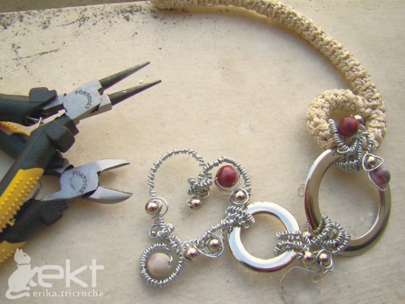 Я купил 20 проволоки, кольца, серебряные бусины и металлические кольца, и творчество, я создавал и, увидев, как далеко мы можем получить это ожерелье. И это то, что он был совершенно красивый тоже!