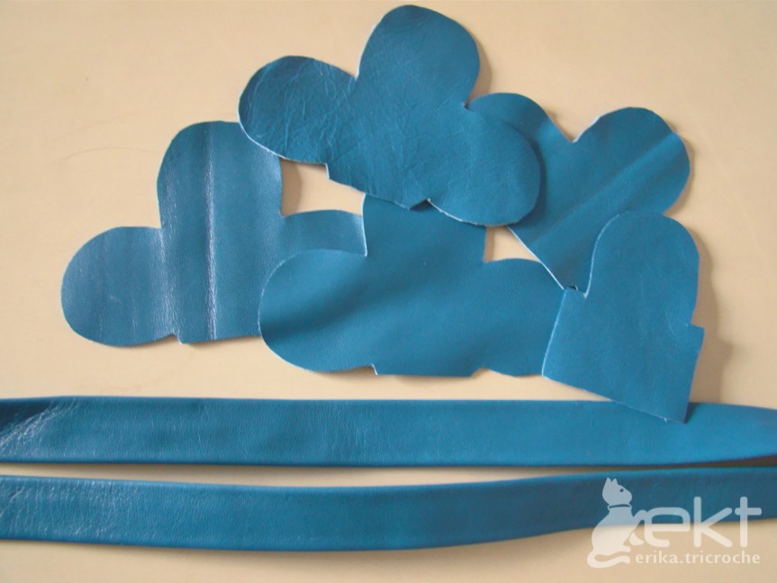 Это была самая трудная часть, потому что я не думаю, что любой путь синий кожаный ремешок, мне пришлось купить овчины и мой муж помог мне сделать ручками.