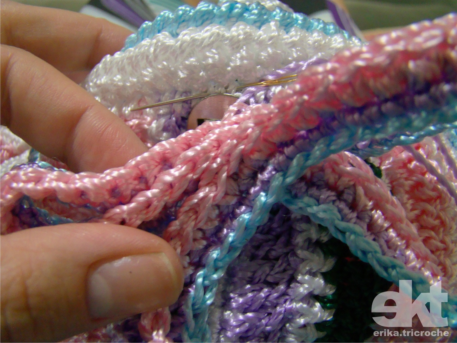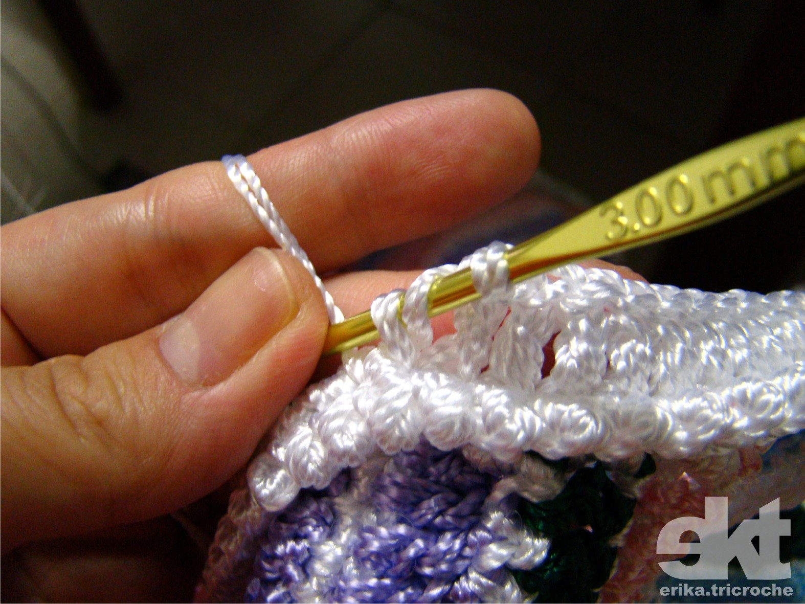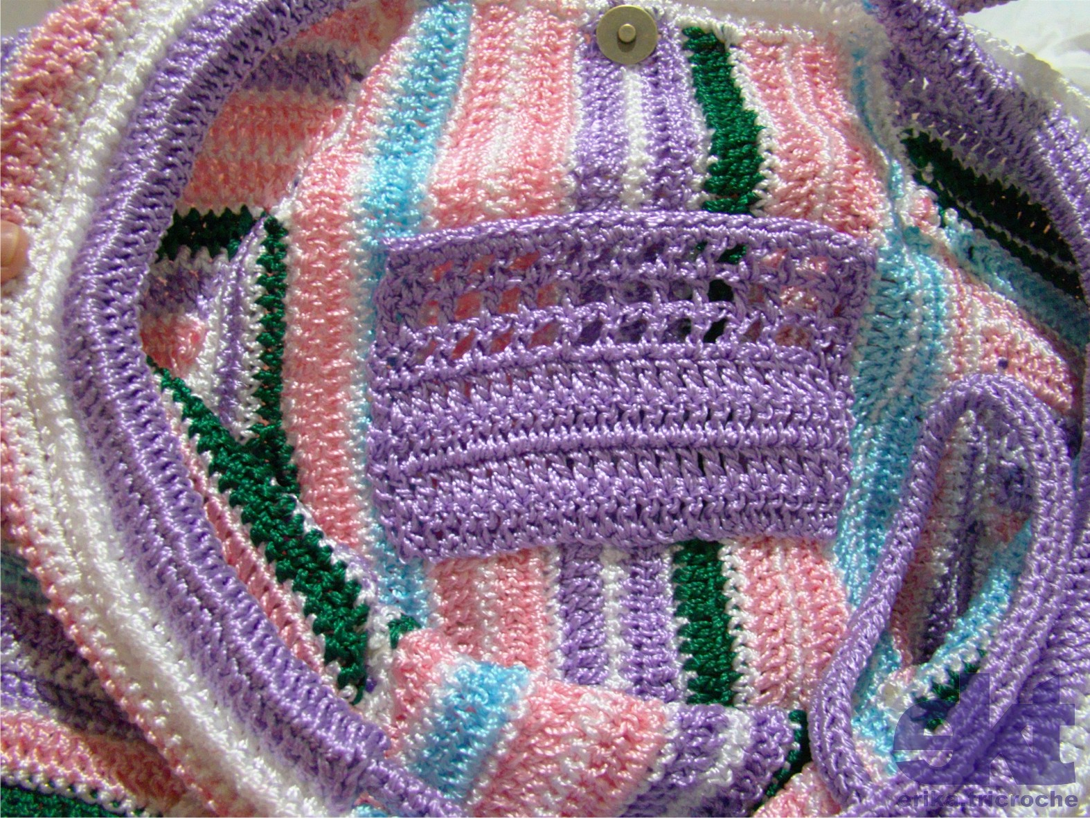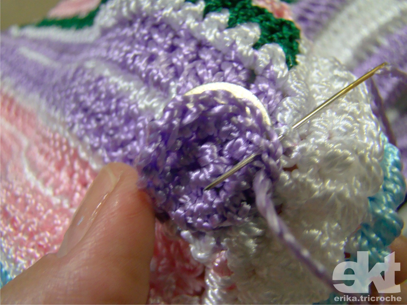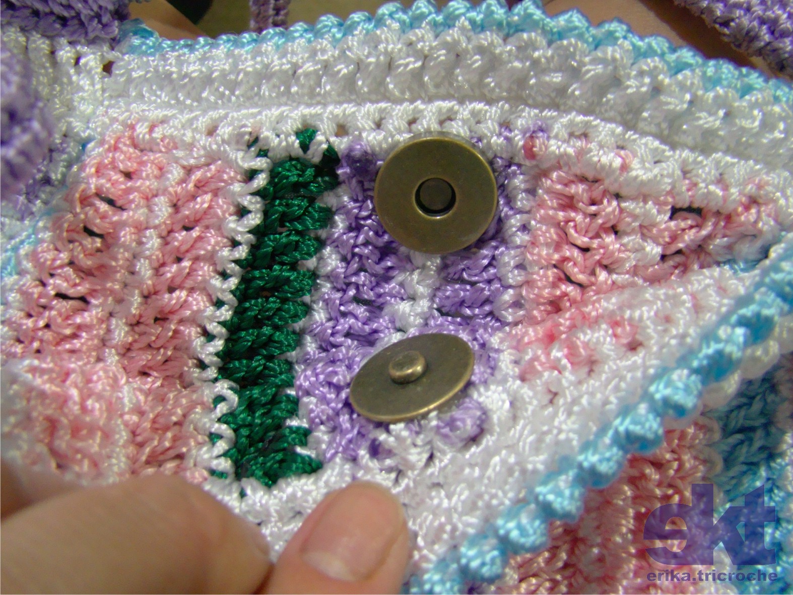 ![]() В сумке без подкладки, вы должны сделать круг по вязанию крючком и пришить за то, чтобы появляться раз кнопку на задней стороне сумки. ![]() Я сделал круг с 6 б.п., а второе увеличение в два карьера pbjunto